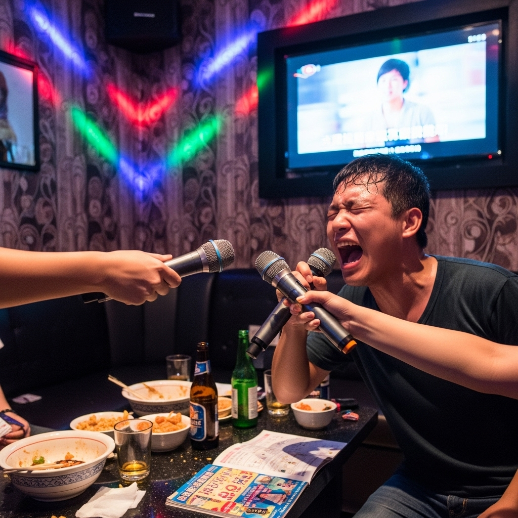 2025年8月、台北のKTVで友人たちと夜更けまで。