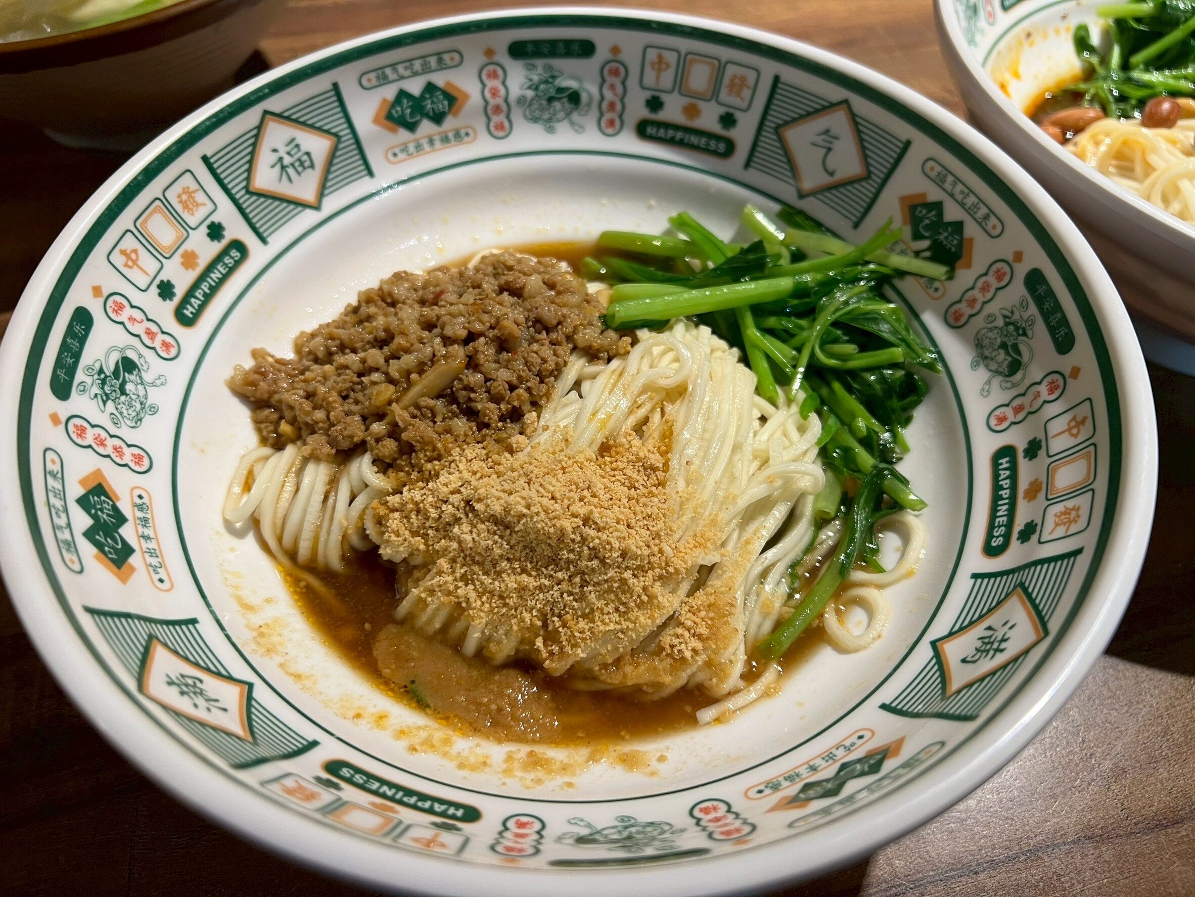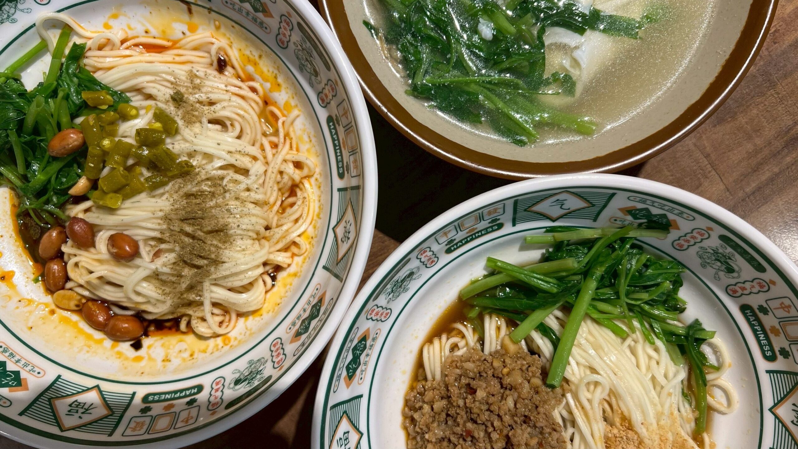 担担麺は辛くない系で香りが立つ。重慶小麵(辣辣・減辛)はちゃんと辛い。花椒のビリビリが気持ちいい。