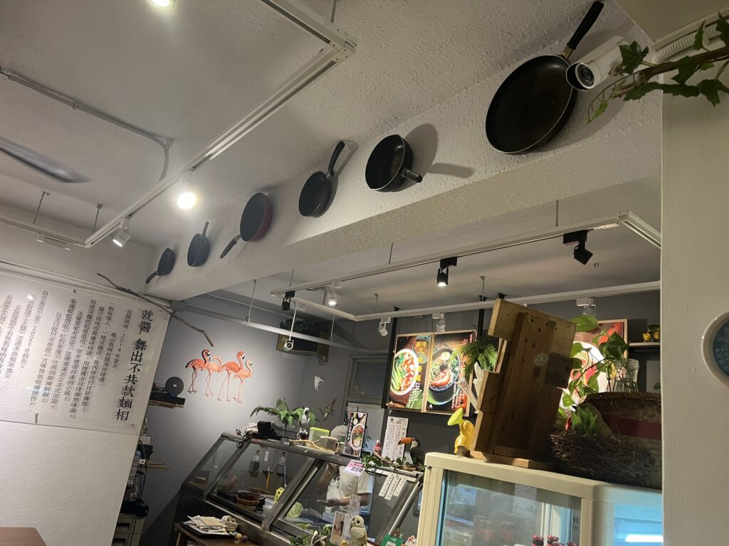 路地の角に、すっと馴染んだ小さな店。入ると、フライパンやテーブルを再利用したディスプレイが目に入ります。店長さん(宜蘭出身)に聞いたら、使えなくなった道具を捨てずに“第二の居場所”へ——環境への気づかいがさりげなくて素敵。