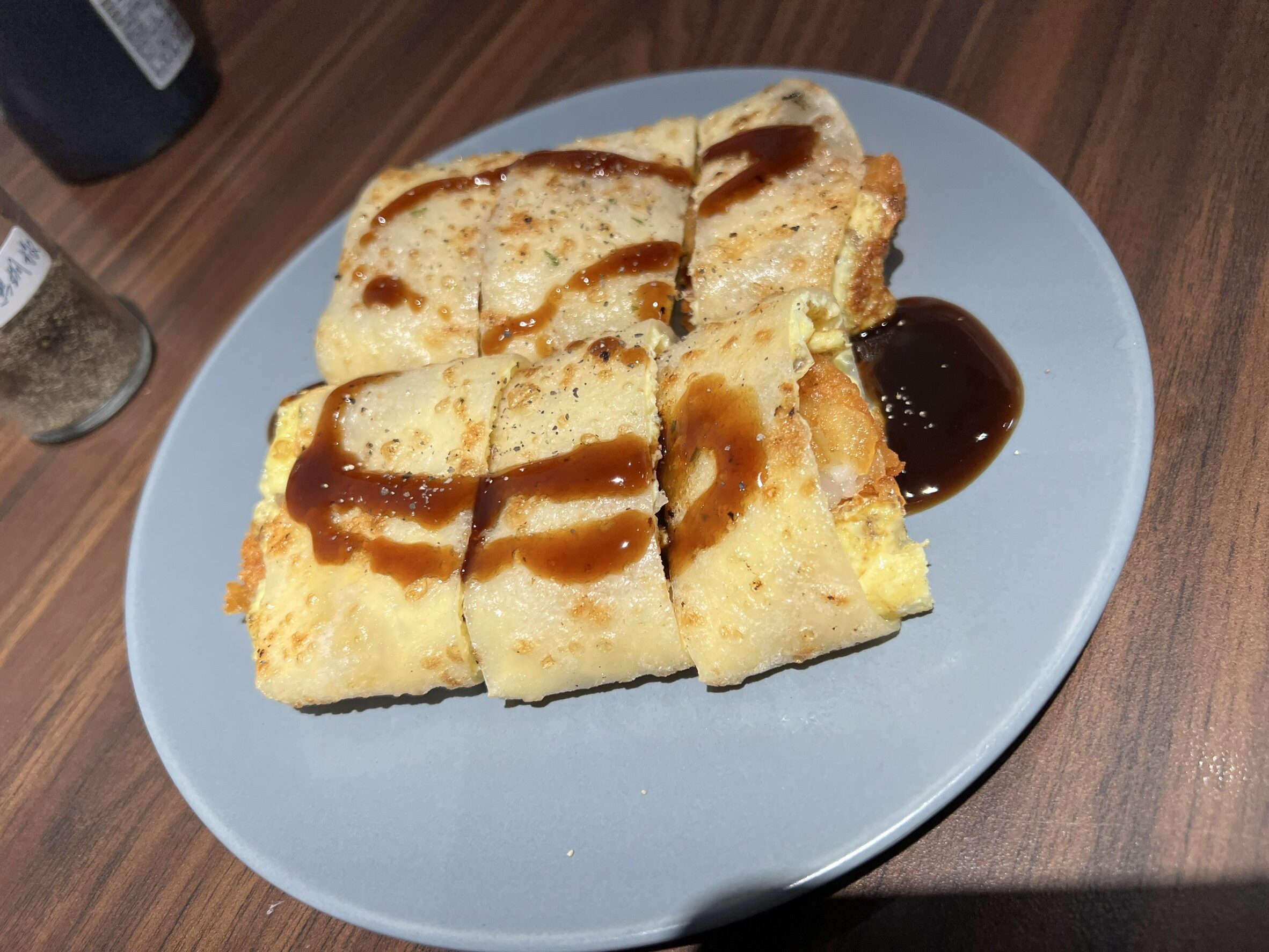 皮がパリパリ。割るとチーズが糸を引いて、塩気の輪郭だけを残す。甘さ強めのソースを使う店も多いけど、ここはクセが出すぎない。“日本の口”に素直に合う蛋餅。
